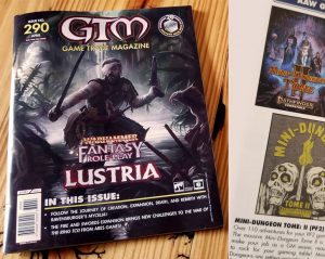 - Featured in Game Trade MagazineThe Mini-Dungeon Tome II (AAW Games) is featured in the April Issue #290 of Game Trade Magazine detailing its over 110 adventures and special Limited Edition print. It’s always a neat feeling to unexpectedly find your projects in media publications.